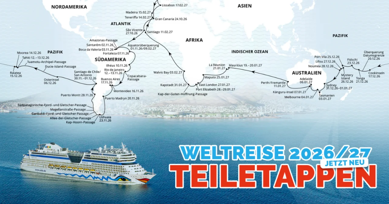 AIDA Weltreise 2026/27: Die neuen Teiletappen im Überblick